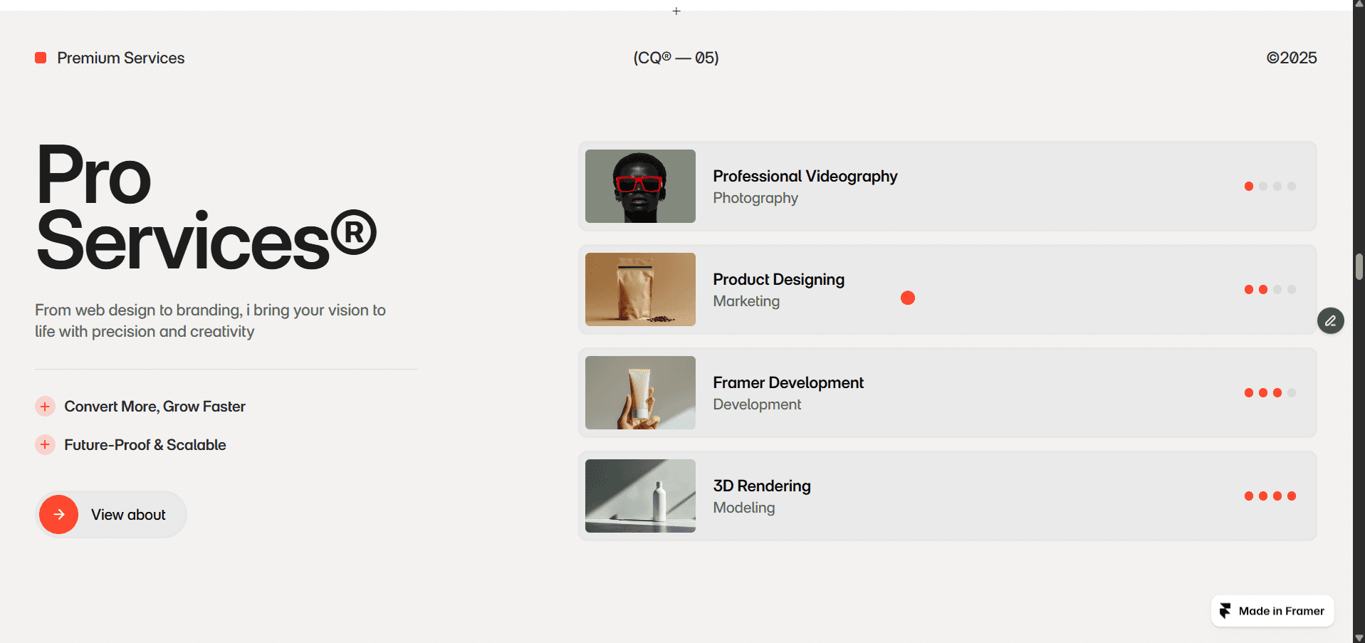 designed and developed this modern, responsive portfolio website using Framer, focusing on clean aesthetics, smooth animations, and an engaging user experience.